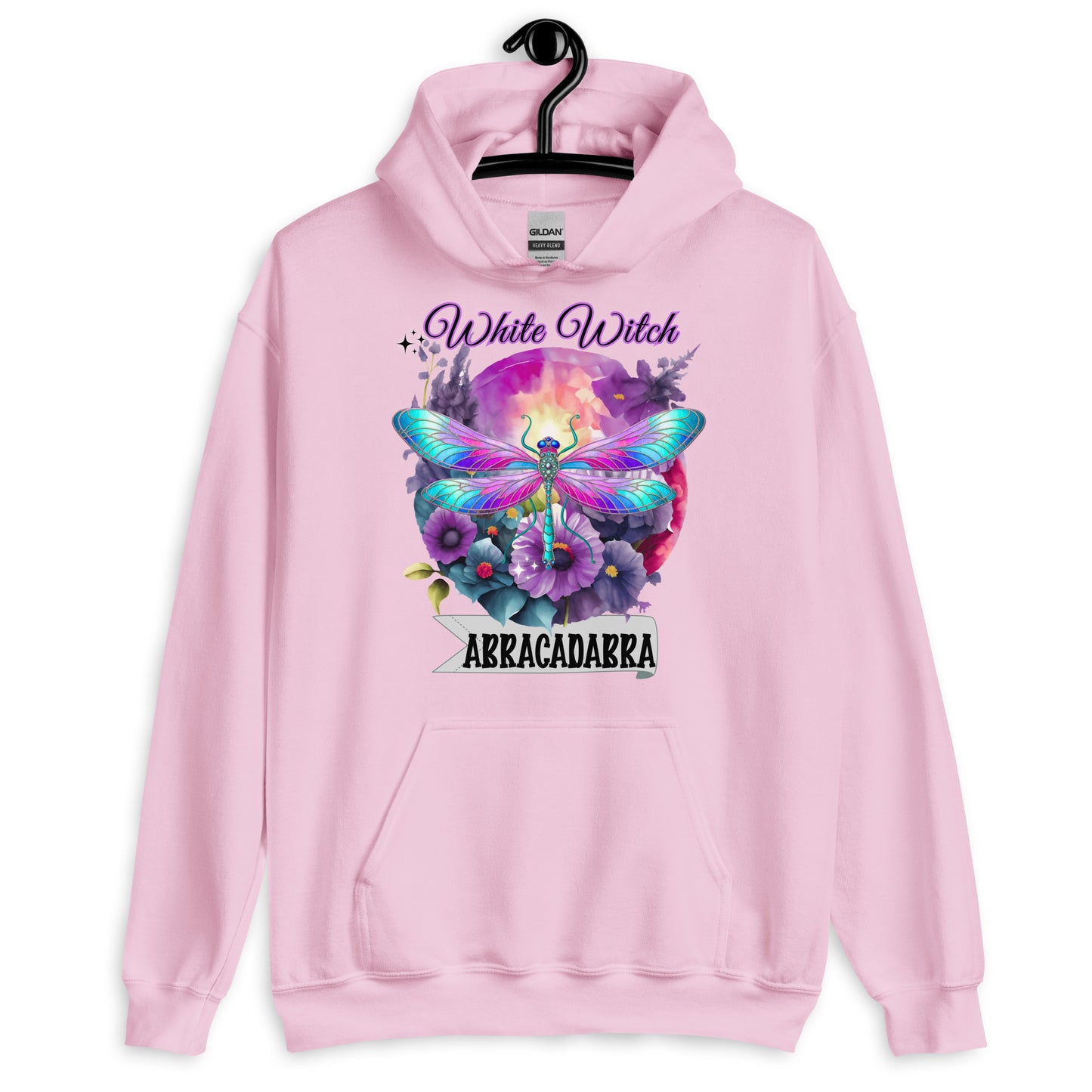 Hoodie – When My Soul Rises I Am a White Witch Abracadabra, Dragonfly & Moon, Front Design