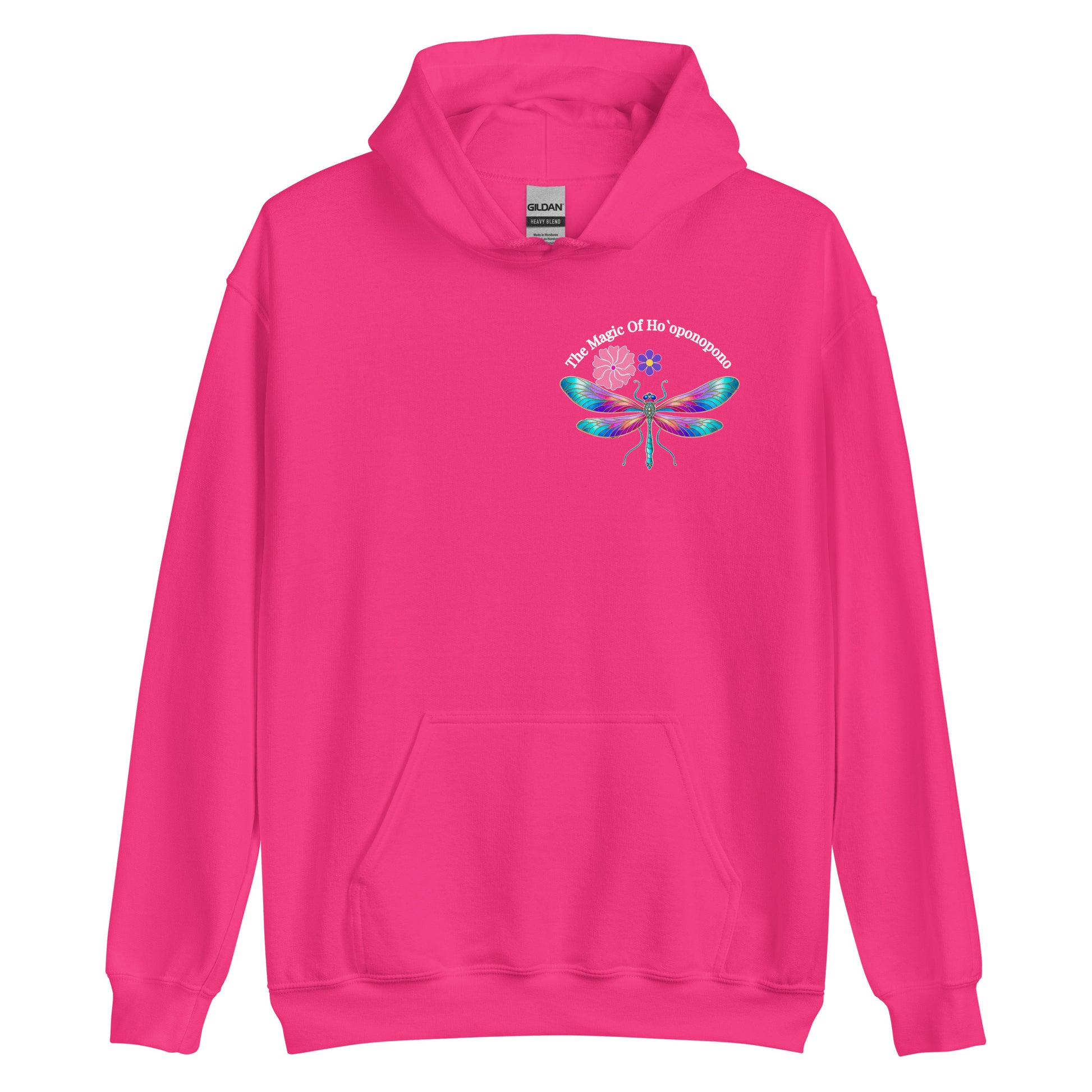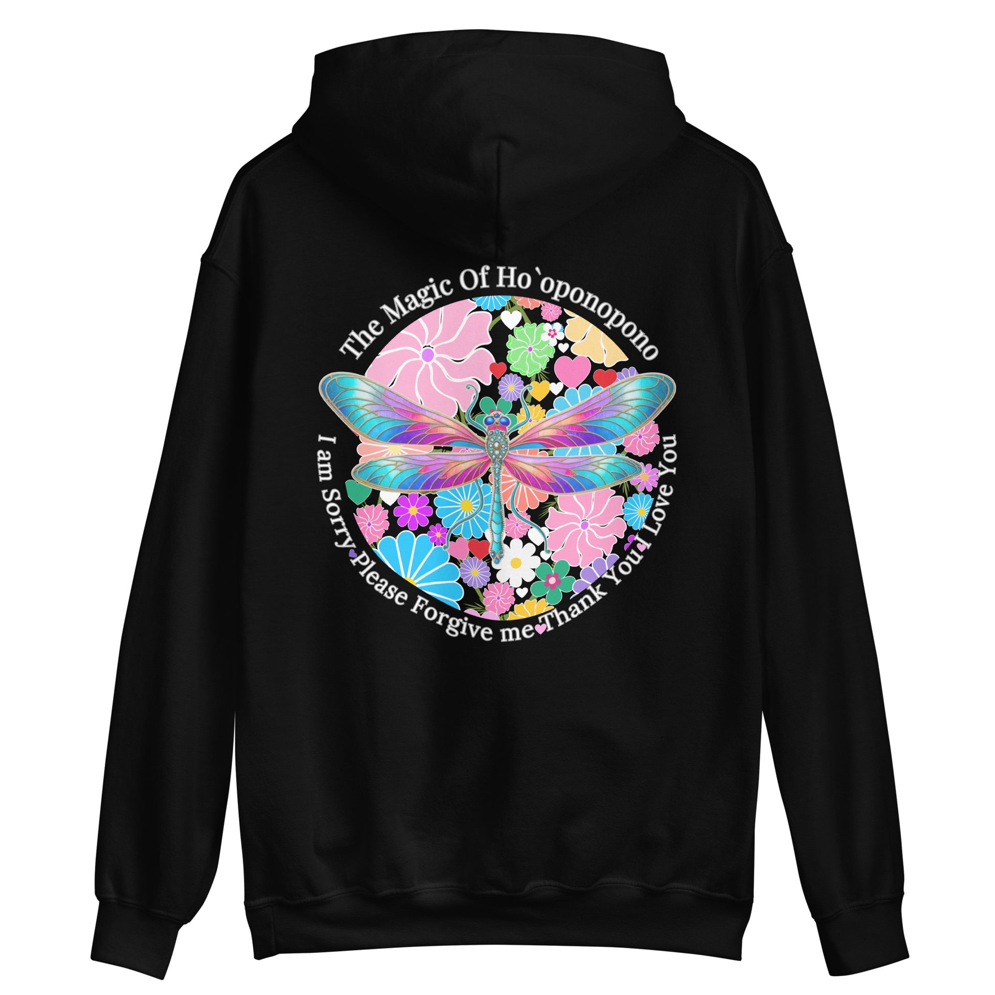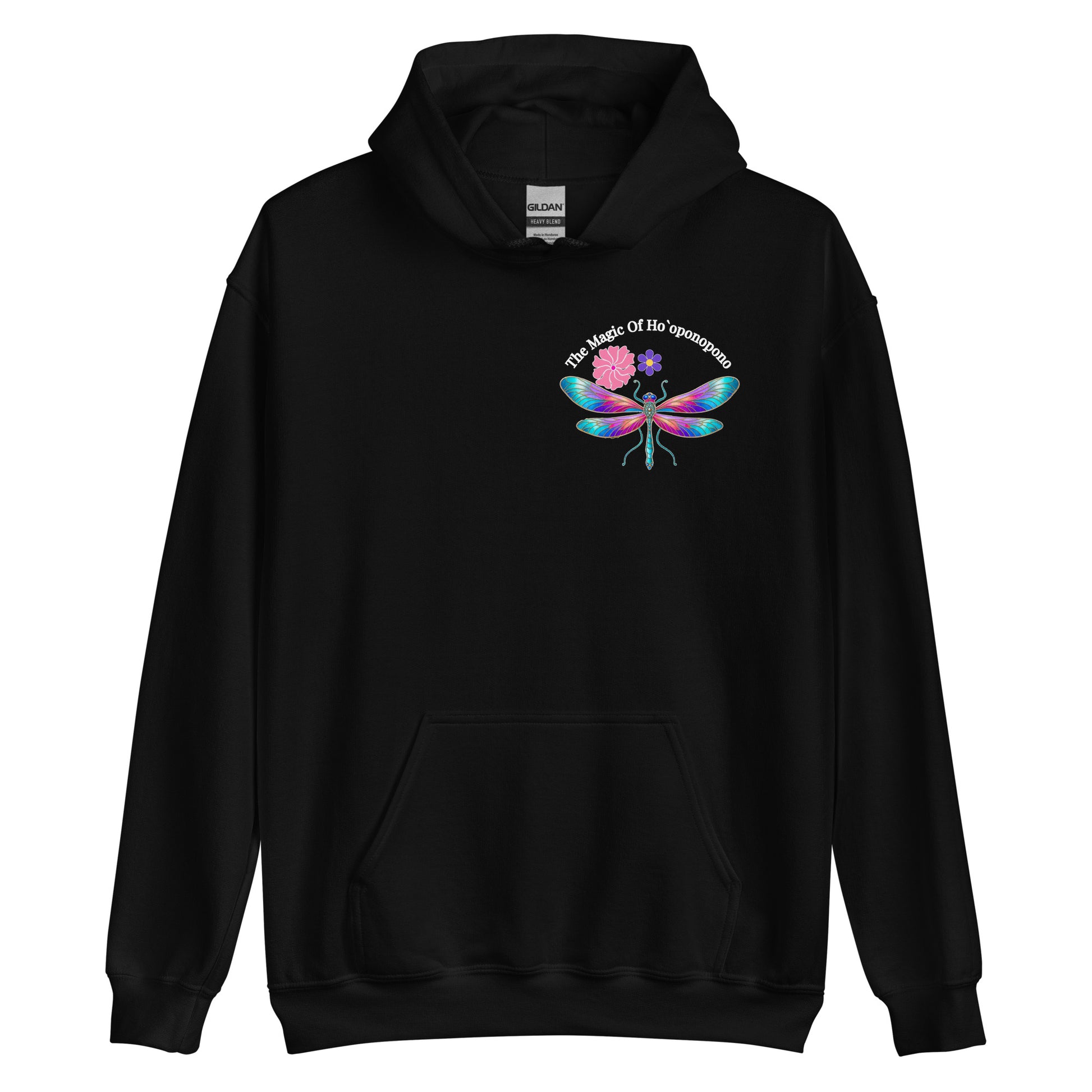 Reconecta con tu paz interior y eleva tu estilo con nuestra sudadera con capucha para mujer Dragonfly Spirit Ho'oponopono.